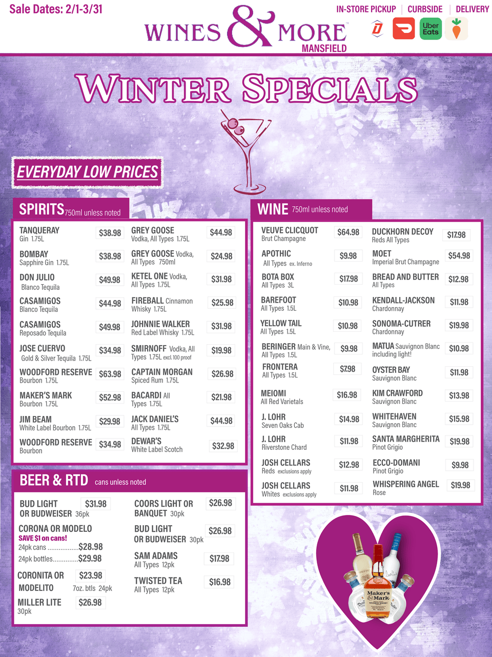 Disclaimer: Wines & More makes reasonable efforts to ensure all information on the website is accurate, however mistakes may happen. Wines & More shall have the right to refuse or cancel any orders placed for products and/or services listed at an incorrect price, rebate or refund, or containing any other incorrect information or typographical errors. Wines & More shall have the right to refuse or cancel any such orders whether or not the order has been confirmed.